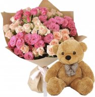 Букет роз, дополненный уютной мягкой игрушкой, станет прекрасным подарком на День влюбленных или 8 марта. Маленькую девочку можно порадовать таким презентом в день рождения.